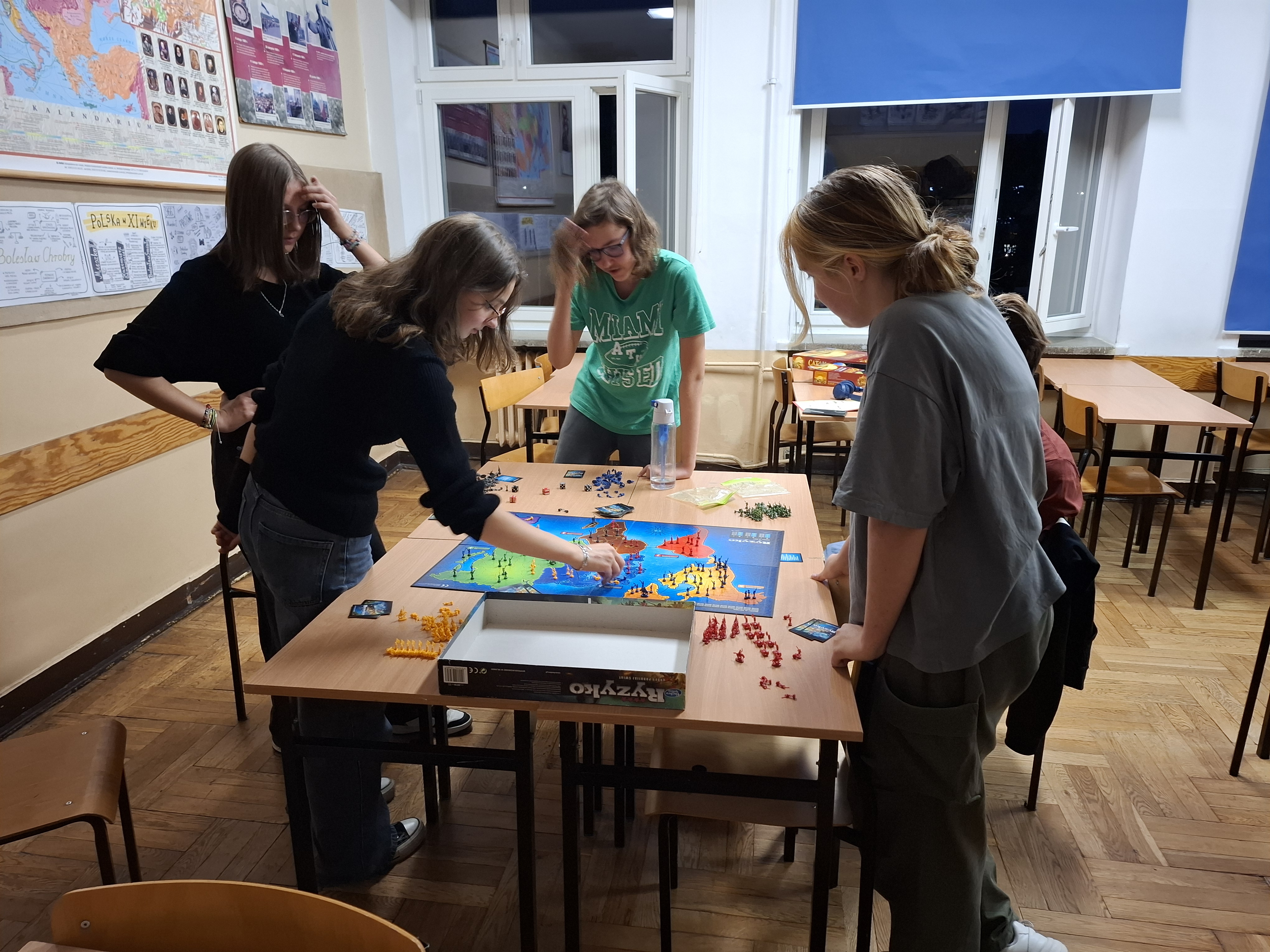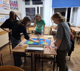 3 października odbył się szkolny wieczorek z planszówkami, pełen emocji, uśmiechu i dobrej zabawy. Uczniowie wraz z kadrą szkoły udali się w pełną współpracy a czasem i rywalizacji podróż w świat gier RPG, strategii i elementów fantasy. W ciągu 4 godzin, przy dwóch stołach udało się rozegrać partie w Smallworld, Descent - Wędrówki w Mroku, Karak, Wsiąść do pociągu - Europa oraz Ryzyko.