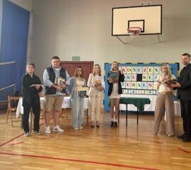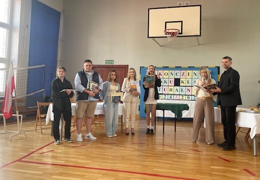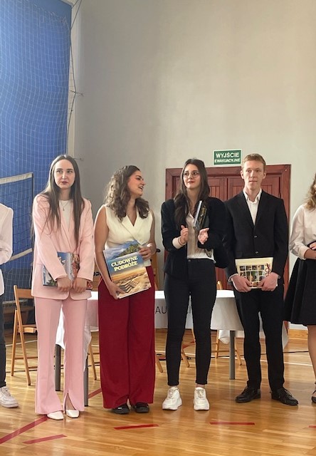 - za osiągnięcia w dziedzinie sportu oraz godne reprezentowanie szkoły w zawodach sportowych: Jan Moreń (5DT), Piotr Stolecki (5ET), Dominika Bączek (5ET), Kacper Adamczuk (5GO).