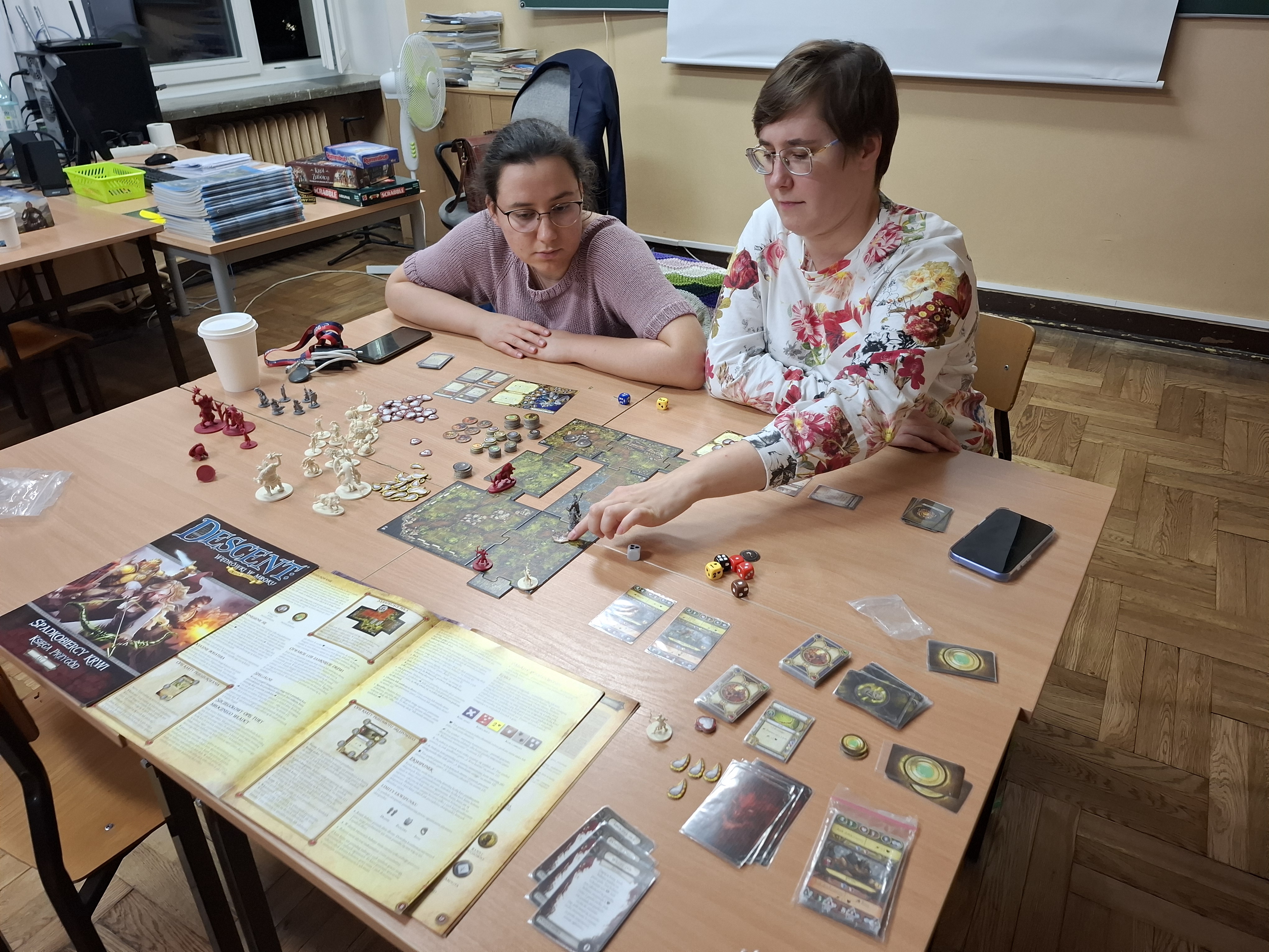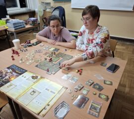 3 października odbył się szkolny wieczorek z planszówkami, pełen emocji, uśmiechu i dobrej zabawy. Uczniowie wraz z kadrą szkoły udali się w pełną współpracy a czasem i rywalizacji podróż w świat gier RPG, strategii i elementów fantasy. W ciągu 4 godzin, przy dwóch stołach udało się rozegrać partie w Smallworld, Descent - Wędrówki w Mroku, Karak, Wsiąść do pociągu - Europa oraz Ryzyko.