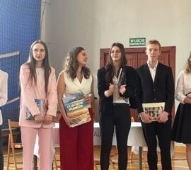 - za osiągnięcia w dziedzinie sportu oraz godne reprezentowanie szkoły w zawodach sportowych: Jan Moreń (5DT), Piotr Stolecki (5ET), Dominika Bączek (5ET), Kacper Adamczuk (5GO).