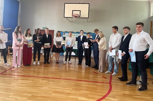 Za bardzo dobre wyniki w nauce i wzorowe zachowanie wyróżnieni zostali: : Magdalena Przybylska (5AH), Aleksandra Babik (5DT), Pola Baraniecka (5DT), Patrycja Pokora (5DT), Aleksandra Soleta (5ET), Mateusz Binkowski (5ET), Ewa Klimańska (5GO), Hanna Hetsman (5GO), Izabela Murawska (5GO).